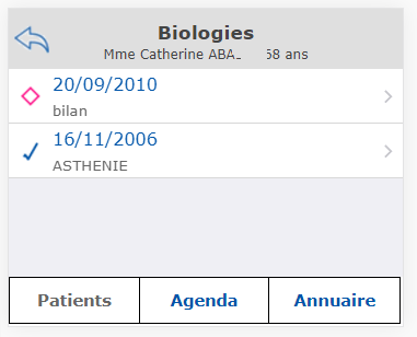 : Ce icône vous indique qu'il existe une prescription de biologie seulement,