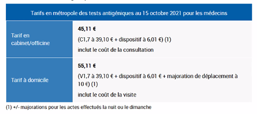 • Dans le cas où le test n'est plus pris en charge, le médecin doit facturer directement le patient sur la base des tarifs des actes habituels (incluant les éventuelles majorations et indemnités de déplacement) :