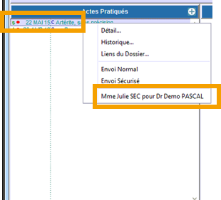 En effectuant un CTRL + clic sur Mac ou clic droit sur PC, vous pouvez voir quelle secrétaire a saisi et pour quel médecin. |