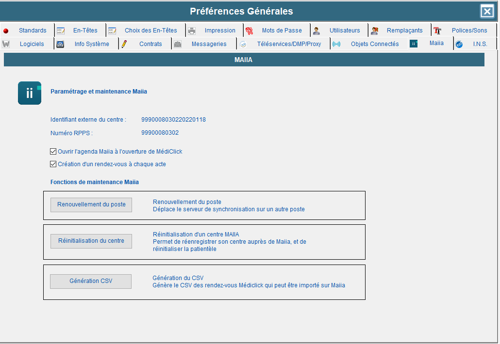 Depuis cet onglet, vous pouvez vous inscrire et activer l'agenda en ligne Maiia.