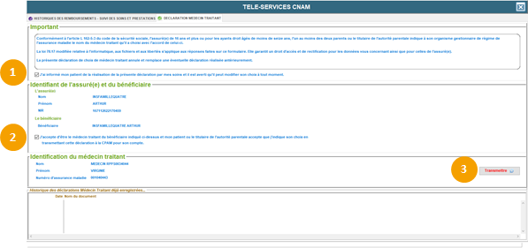 Pour consulter votre Déclaration Médecin traitant depuis l'écran Télé-Services CNAM Déclaration Médecin traitant :