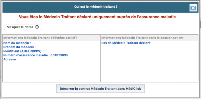 4. Si les informations sont identiques, fermez la fenêtre Qui est le médecin traitant déclaré ?.