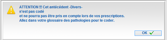 Certaines pathologie ne nécessitent pas toujours d'être codées car il n'y pas pas d'intérêt à être alerté au niveau de la prescription par exemple : l'appendicectomie.