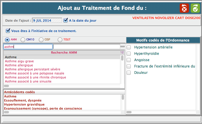 D’affecter un motif ou une pathologie déjà codé au traitement de fond.