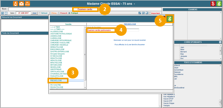 Pour ajouter ou créer un examen complémentaire non existant vous avez deux possibilité :