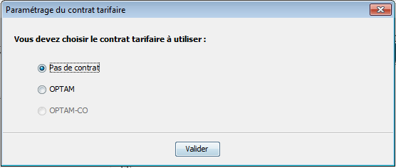 À l'ouverture d'une Feuille de Soins, le logiciel vous demande de définir votre option tarifaire :