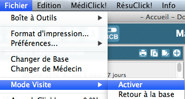 | . | Aide en ligne MédiClick - version 22.00 > La Feuille de soins (JFSE) > Gérer le Terminal Lecteur Applicatif (TLA) > Activer le Mode visite |