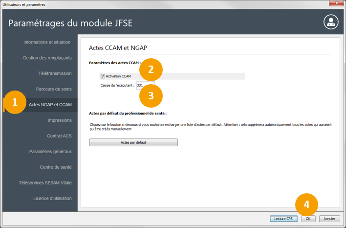 Dans la feuille de soins, si l'onglet Actes CCAM est grisé, cela signifie qu'ils ne sont pas activés.