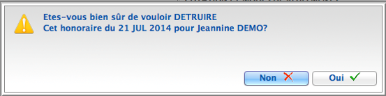 Cliquez sur Oui pour confirmer la suppression de l'honoraire.