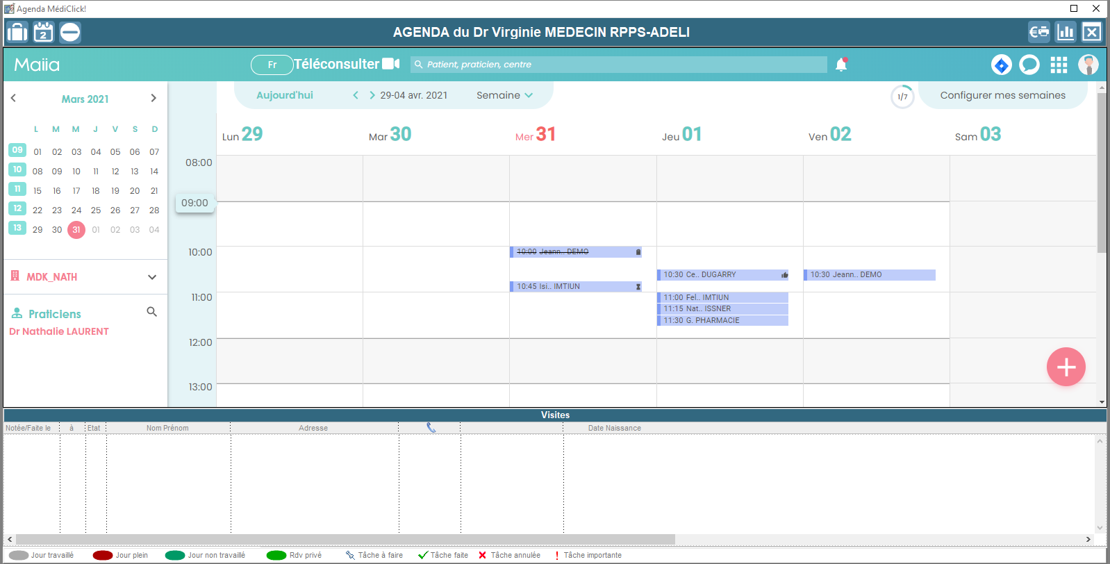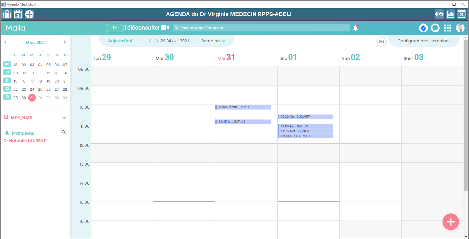 Par la suite, vos identifiants Maiia seront sauvegardés et vous accèderez directement à l'agenda Maiia.