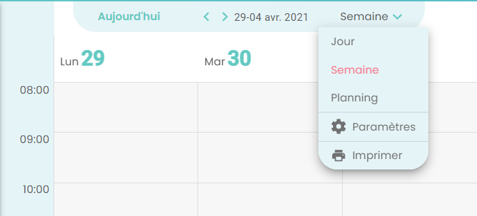 vous permet d'imprimer votre agenda à la journée, à la semaine, etc.