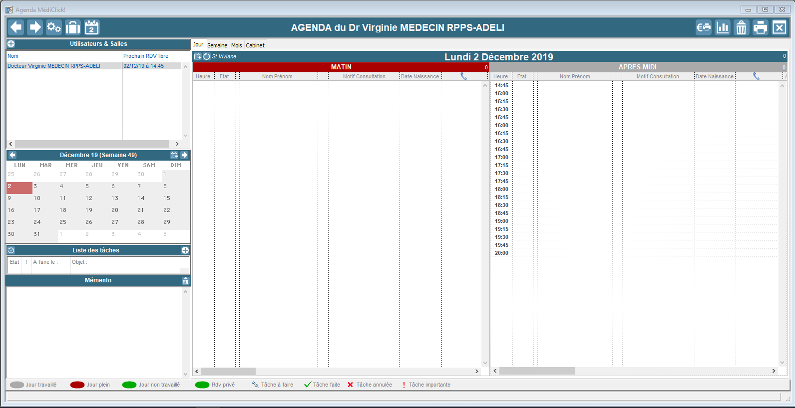 En plus de la gestion de l'agenda par professionnel de santé, Il est désormais possible de gérer l'agenda par salle.