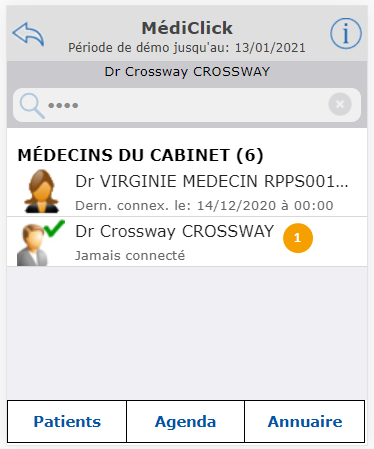4. La liste des professionnels de santé de votre cabinet s'ouvre :