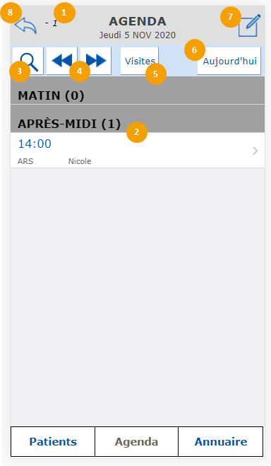 1. Le chiffre qui apparaît à ce niveau, indique le nombre de rendez-vous ou de visites pour la journée sélectionnée.