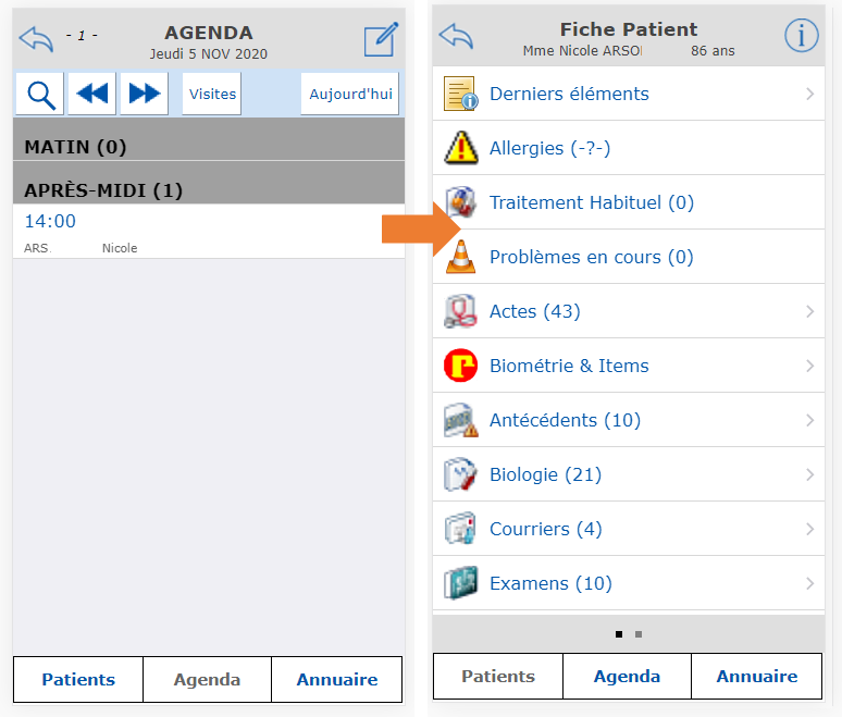 En cliquant sur le rendez-vous, vous accédez directement au dossier du patient :