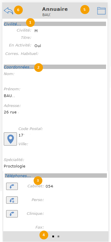 5. : Ce bouton vous permet de modifier la fiche de votre correspondant,
