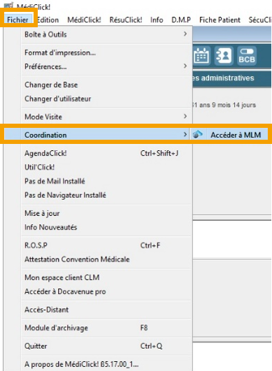 Faites un clic droit sur le bouton Coordonner le patient , ou cliquez sur le menu Fichier → Coordination → Accéder à MLM :