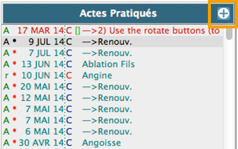 Depuis l'écran d'accueil, le bouton présent dans chacune des présentations de l'historique des actes permet d'accéder directement à la saisie de la consultation.
