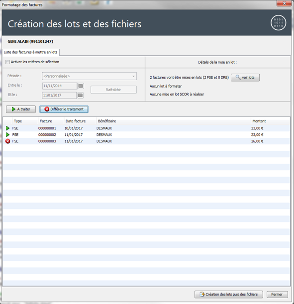 Cliquez sur le bouton Création des lots puis des fichiers.