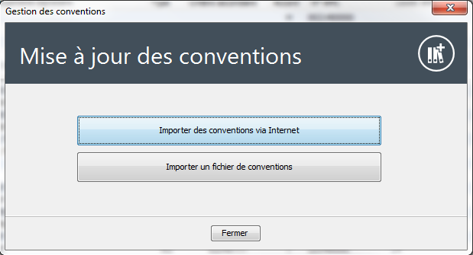 La liste des conventions, avec la date de la dernière mise à jour apparaît. Sélectionnez celle que vous souhaitez importer, puis cliquez sur le bouton .