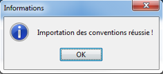 Il se peut qu'une liste de groupements ayant signé la convention en cours d'import apparaisse, cliquez sur . La convention est importée. Cliquez sur .