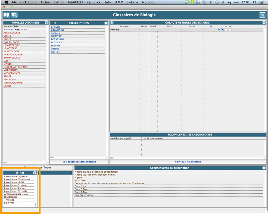 prescriptions types :Saisissez le titre de votre bilan et validez en cliquant dans la case à côté.