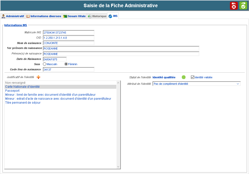 Vous pouvez renseigner cette qualification dans la fiche administrative du patient :