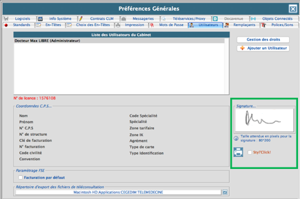 3) Copiez l'image de votre signature. 4) Dans MédiClick, cliquez sur → → , et collez l'image de votre signature dans la zone prévue à cet effet. La signature ne doit pas dépassé le cadre. |