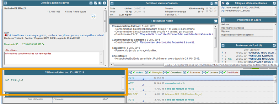 L'acte typé Téléconsultation sera notifié par la lettre T, vous la retrouverez dans :