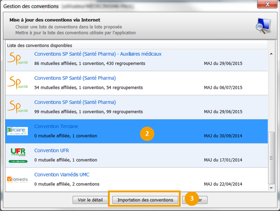 La fenêtre Mise à jour des conventions - Détails apparaît, cliquez sur Fermer.
