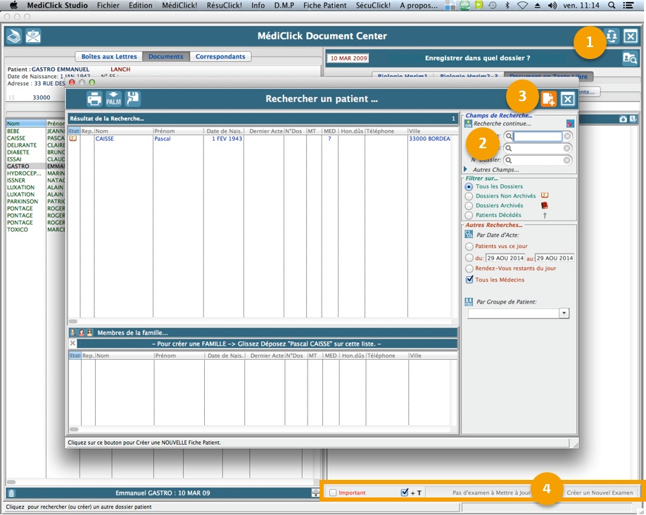 Si un patient correspond, double-cliquez dessus pour charger le dossier.