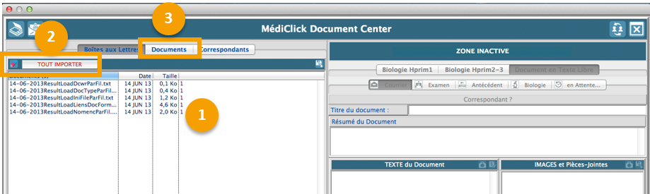 MédiClick traite les données et change l'affichage en passant de l'onglet Boites aux Lettres vers l'onglet Documents comme illustré ci-dessous :