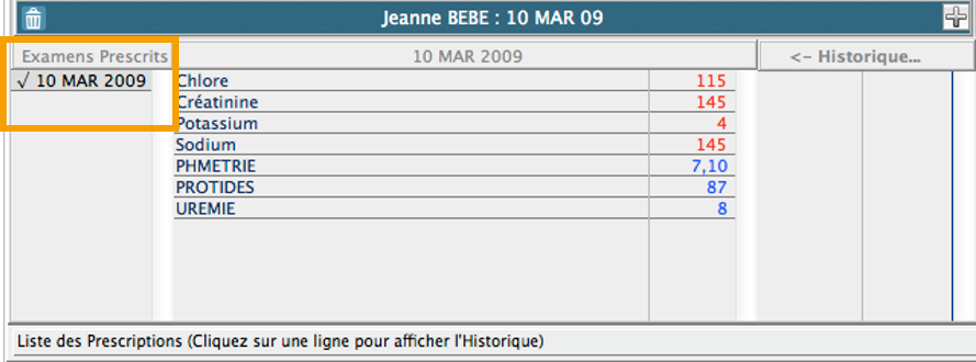 Parce que l'examen a été prescrit depuis MédiClick, cliquez sur la ligne de la liste inférieure gauche dont les examens concordent avec ceux affichés à droite :