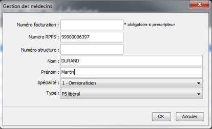 Si le nom du médecin que vous souhaitez renseigner n'existe pas dans la liste, cliquez sur le bouton afin de le créer. La liste des médecins déjà créés apparaît, cliquez sur le bouton .