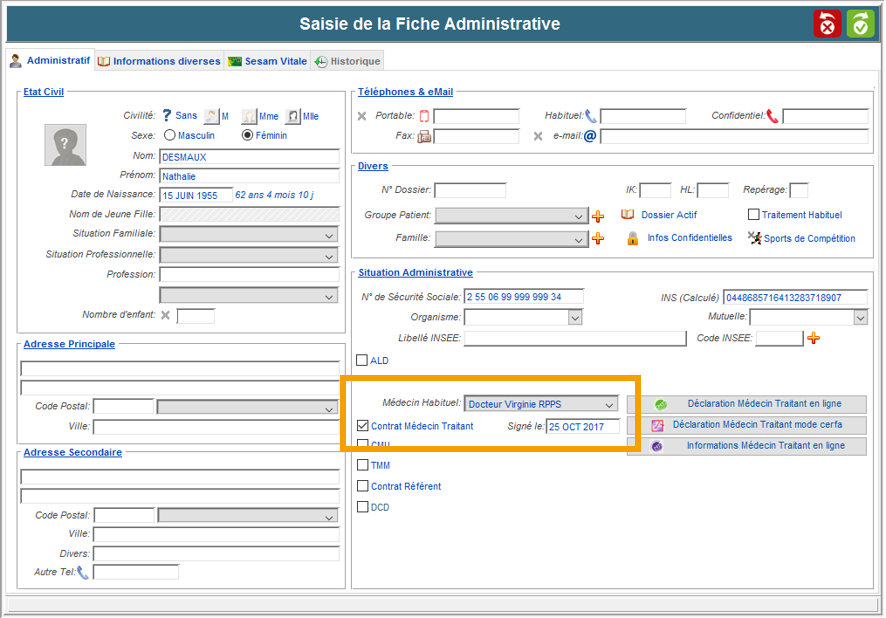 Si vous avez indiqué le nom du médecin traitant, dans la fiche administrative du patient, le contexte du parcours de soins sera renseigné automatiquement dans la feuille de soins.