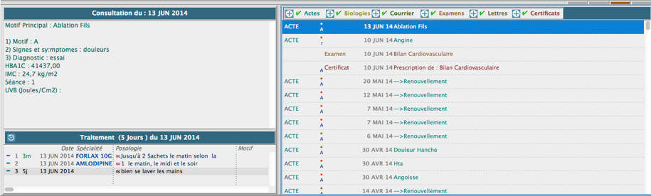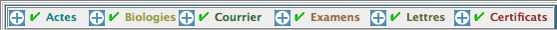 Il est possible de filtrer l’information présentée par type de données: Actes, Prescriptions, …via les coches vertes. |
