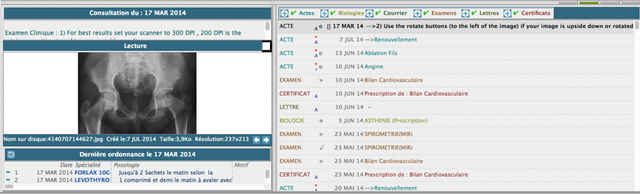 L’examen complémentaire et les images et/ou les fichiers sont affichés