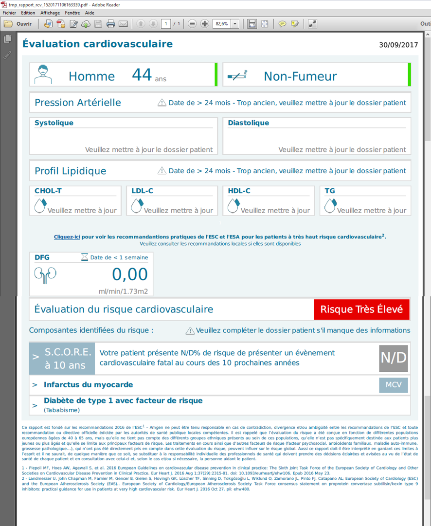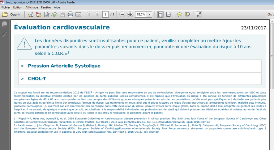 Si certains éléments, comme par exemple la pression artérielle, la biologie Cholestérolémie... sont manquants dans le dossier, l'évaluation du risque cardiovasculaire ne peut pas être calculée.