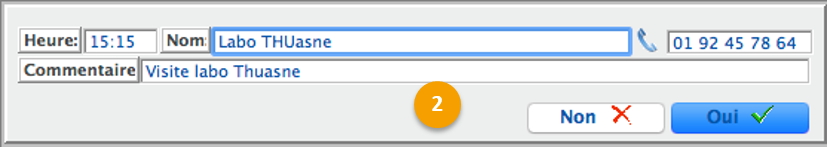 Renseignez les informations relatives au RDV privé que vous souhaitez mettre dans l'agenda puis cliquez sur Oui pour valider la planification du RDV.