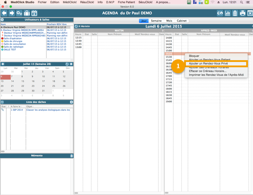 Faites un CTRL + clic (Mac) ou clic droit (PC) puis sélectionnez Ajouter un RDV privé sur le créneau horaire, pour lequel vous souhaitez saisir un RDV privé :
