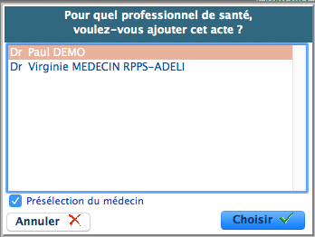 Désormais, il suffit de cocher la case Présélection du médecin afin que le médecin soit sélectionné par défaut et que les données saisies par la secrétaire lui soient rattachées.