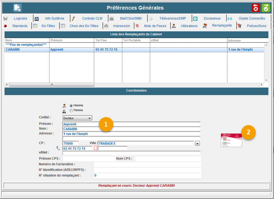 Depuis cet onglet, vous pouvez saisir les coordonnées de votre ou vos remplaçant(s).