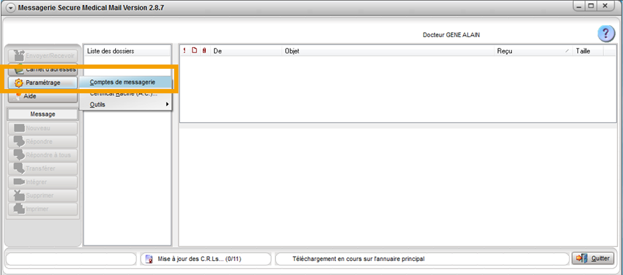 Dans la barre d’outils à gauche, cliquez sur le menu ParamétrageComptes de messagerie.