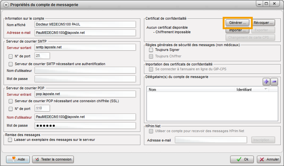 Pour générer le certificat de confidentialité en lien avec la carte CPS du Professionnel de santé, allez dans les Préférences Générales de Médiclick :