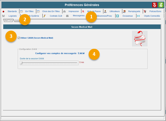 3. Si nécessaire, cochez Utiliser S.M.M (Secure Medical Mail),