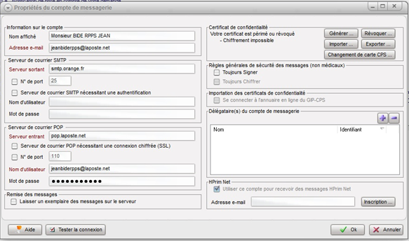 , Préférences générales du logiciel, l'onglet Messagerie et le sous onglet S.M.M.Cliquez sur Configurer vos comptes de messagerie S.M.M.