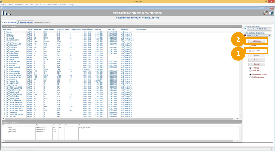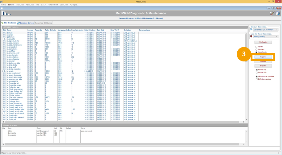Une fois la vérification terminée, MédiClick indique le nombre de tables endommagées, cliquez sur OK.
