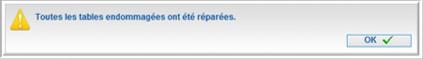 Après réparation des tables endommagées, le message suivant apparaît, cliquez sur OK.