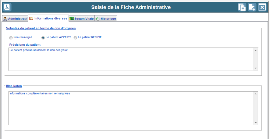 L'onglet Informations diverses permet de saisir :