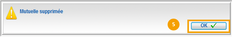 5. Un message confirmant la suppression de la mutuelle apparait, cliquez sur Ok :